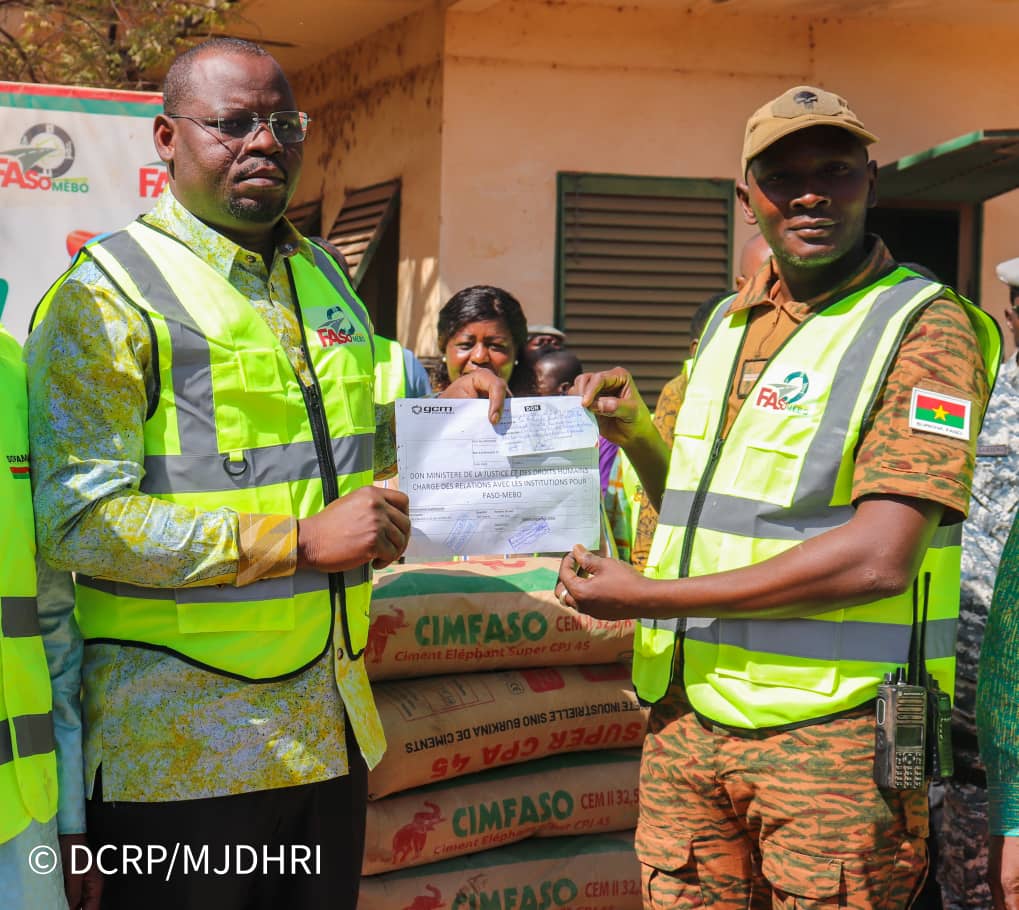 D’une valeur totale de 22 600 000 F CFA, composée de 160 tonnes de ciment, de 160 tonnes de sable et de 200 tonnes de granite, ce don dépasse la simple fourniture de matériaux : il traduit la détermination d’un ministère à bâtir une nation de justice, de paix et de bien-être pour tous les citoyens. Au cœur de cette mobilisation exemplaire, se dresse la figure de proue du Garde des Sceaux, Me Edasso Rodrigue BAYALA, dont le leadership a su mobiliser l’ensemble des acteurs du secteur de la Justice et des Droits humains ainsi que les ordres constitués des auxiliaires de Justice.