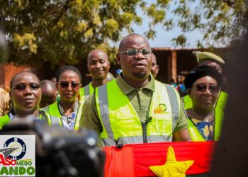 𝐅𝐀𝐒𝐎_𝐌𝐄𝐁𝐎_𝐍𝐀𝐍𝐃𝐎 : 𝐃𝐞𝐬 𝐦𝐞𝐦𝐛𝐫𝐞𝐬 𝐝𝐮 𝐆𝐨𝐮𝐯𝐞𝐫𝐧𝐞𝐦𝐞𝐧𝐭 𝐞𝐭 𝐝𝐞𝐬 𝐏𝐫é𝐬𝐢𝐝𝐞𝐧𝐭𝐬 𝐝’𝐈𝐧𝐬𝐭𝐢𝐭𝐮𝐭𝐢𝐨𝐧𝐬 𝐨𝐟𝐟𝐫𝐞𝐧𝐭 𝐮𝐧 𝐝𝐨𝐧 𝐝𝐞 𝐩𝐥𝐮𝐬 𝐝𝐞 𝟕 𝐦𝐢𝐥𝐥𝐢𝐨𝐧𝐬 𝐝𝐞 𝐟𝐫𝐚𝐧𝐜𝐬 𝐂𝐅𝐀 (Koudougou, 15 novembre 2025) Des membres du Gouvernement et des Présidents d’Institutions sous le leadership du Ministre de la Justice et des Droits humains, chargé des Relations avec les Institutions, Garde des Sceaux, Me Edasso Rodrigue BAYALA, unissent leurs forces et montrent le bon exemple aux filles et fils de la région du Nando. Dans la matinée de ce samedi, ils ont mouillé le maillot en bêchant, fouillant, et mélangeant sable, ciment, gravier et eau pour fabriquer des pavés nécessaires à l’embellissement et à l’assainissement de notre cadre de vie. Pour joindre l’utile à l’agréable, ils ont offert un don exceptionnel d’une valeur estimée à plus de 7 millions de francs CFA constitué de : – 80 tonnes de granulat, – 40 tonnes de sable, – 40 tonnes de ciment, – 200 paires de gants de protection individuelle, – 5 sacs d’ocre, – 1 compacteur, – 66 moules de bordures. Chacun peut et doit contribuer en faisant un geste symbolique et en participant aux travaux de Faso Mêbo pour témoigner de son adhésion pleine et entière à cette initiative présidentielle. DCRP /MJDHRI